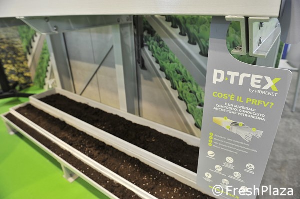 "We ontwerpen en bouwen profielen en allerlei soorten GVK-structuren die ideaal zijn voor de teelt in rekken", zegt Laura Rinaldi van de afdeling marketing van P-Trex.