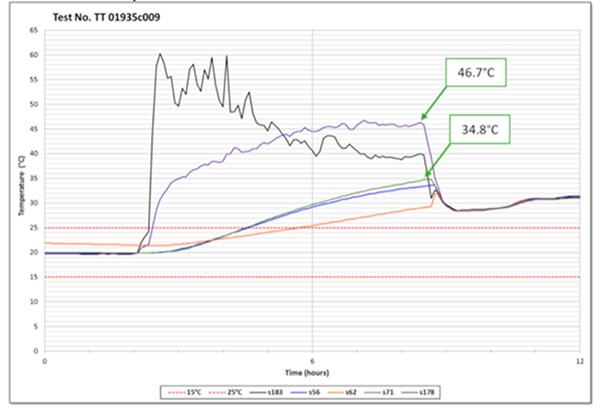 Testresultaten Praxas TLX2 cargo cover bij omgevingstemperatuur van 47,6 graden Celcius
