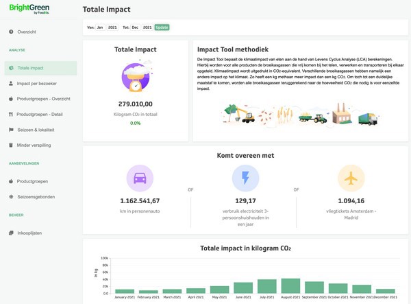 De CO2-Impact Tool van Fooditis geeft cateraars, restaurants en chef-koks inzicht in hun CO2-impact. BrightGreen berekent de CO2-impact van de gebruikte ingrediënten. Als één van de eerste gebruikers van de tool krijgt Vitam hierdoor beter inzicht in de milieubelasting en de eiwitverdeling van het ingekochte assortiment. Als men meer lokaal, plantaardig en seizoensgebonden inkoopt daalt de CO2-impact en ziet men dat terug in het dashboard. Hierdoor stuurt de ondernemende cateraar al bij de inkoop van producten actief aan op verbeteringen die de CO2-uitstoot beperken. Met de informatie uit de tool helpt Vitam haar gasten beter bij het maken van duurzame keuzes en krijgen opdrachtgevers meer uitleg over overwegingen in het proces.