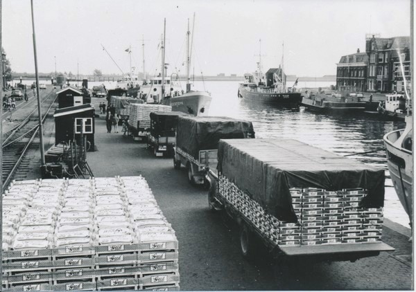 Containers groenten worden ingescheept in de Geestdiep (Westlands Museum | F.0262-4-15)