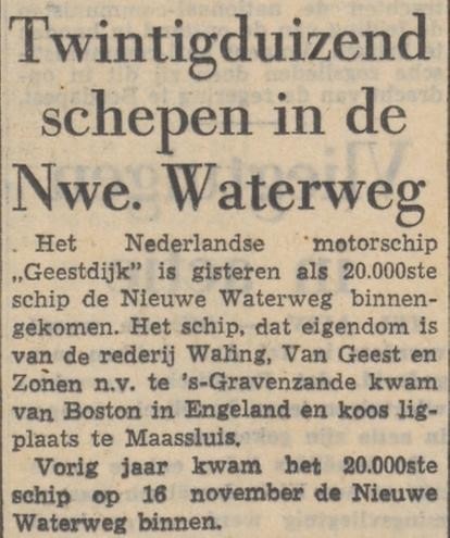 Vanaf de jaren vijftig van de vorige eeuw bepalen de coasters van Waling van Geest & Zonen het economisch beeld van de Maassluise haven. Aan de kade liggen afwisselend de coasters Geeststroom, Geestdijk, Geestdam, Geestsluis, Geestdiep en Geestduin in afwachting van de lading groenten voor de Engelse markt. Vrachtwagens en goederenwagons uit het Westland rijden af en aan. Stuwadoors zijn druk in de weer om de kistjes met Westlandse producten op de rollenbanden te zetten en in het ruim te stuwen.