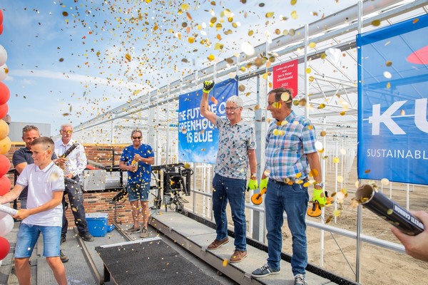 De bouwborrel werd georganiseerd om de bouwers en het bouwteam te bedanken die nu vijf jaar geleden gestart zijn met het bouwen van vier kassen van elk 11 ha, een centrale verpakkingsruimte en kantooromgeving.
