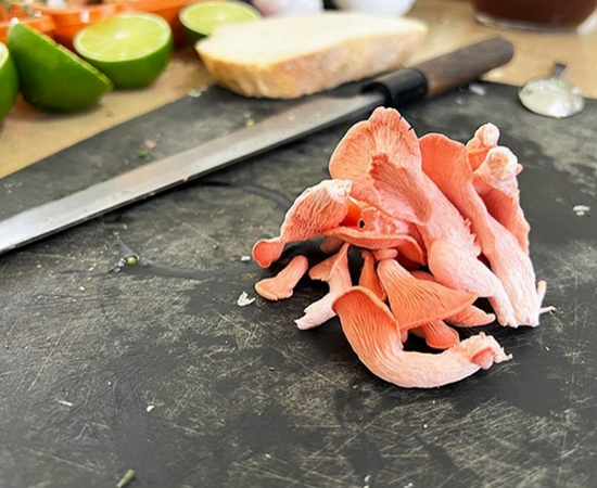 Roze oesterzwam klaar om te worden gebruikt voor het diner