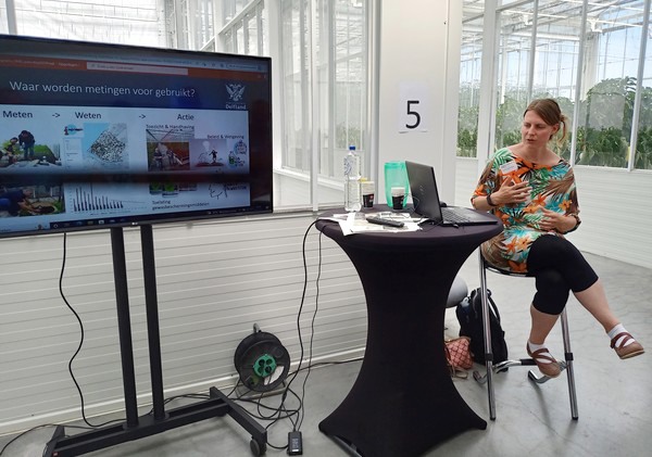 Djolene van den Berg van het Hoogheemraadschap Delfland vertelt over hoe men meet, wat men meet en waar men meet. In principe zijn alle gegevens openbaar (zie dit dashboard), maar vraag is hoe het inzichtelijker kan. Omgekeerd is dan ook weer van belang welke gegevens men precies wilt zien en hoe die het best gepresenteerd kunnen worden.