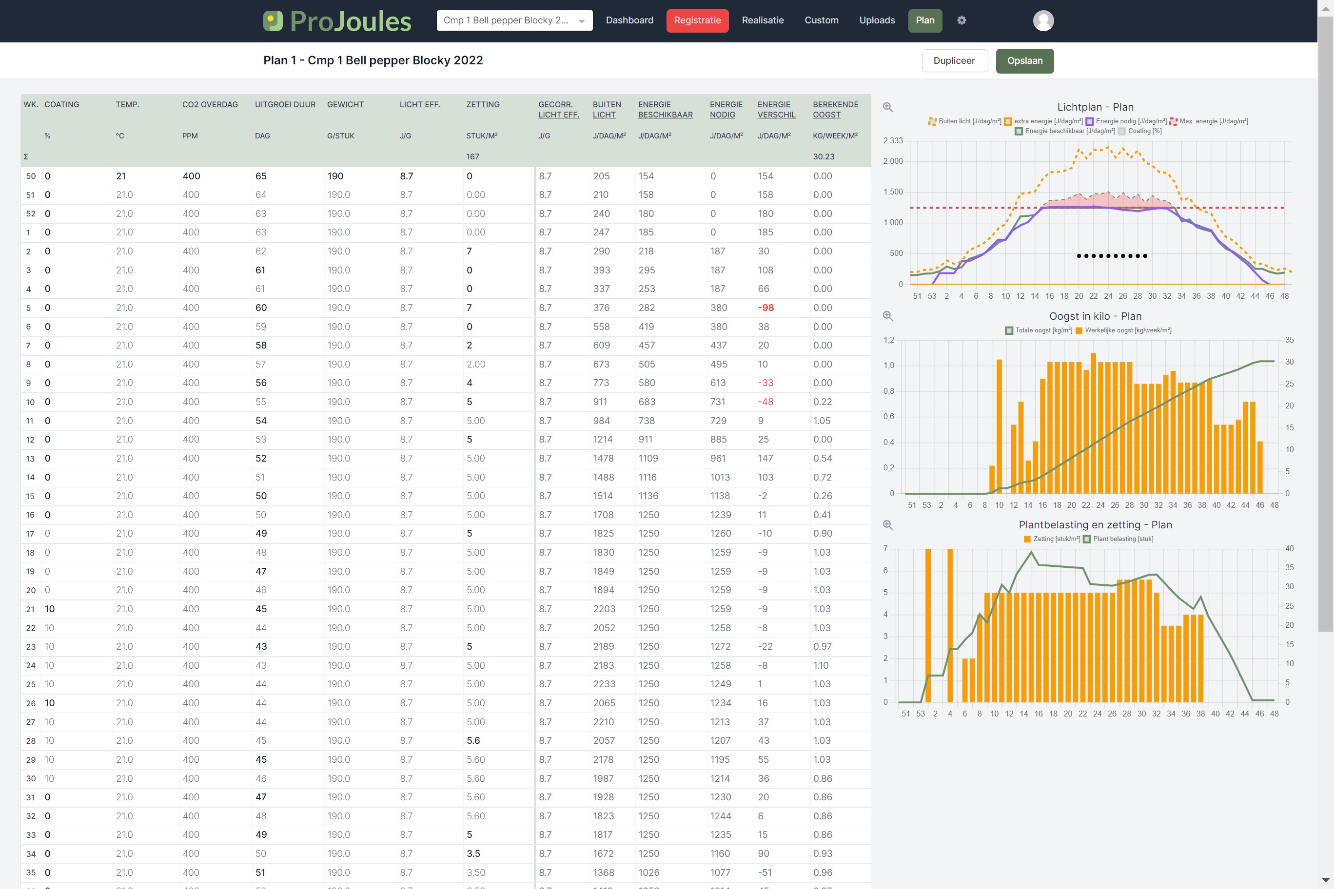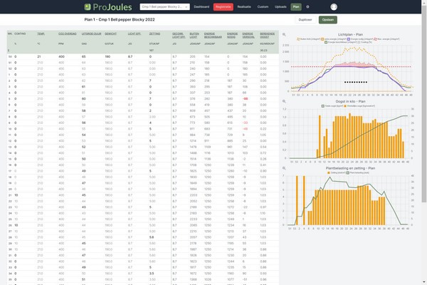 De naam ProJoules verraadt dat het model draait om licht, of beter gezegd joules, de totale hoeveelheid licht in de kas op plantniveau. Marcel voert daarom gegevens over de lichtinval in ProJoules in, naast andere klimaatgegevens en gegevens over het vruchtgewicht. Hij gebruikt het ProJoules portaal sinds december vorig jaar. Hiermee kunnen stralingswaarden op plantniveau worden berekend op basis van het licht van buitenaf. "Dankzij het programma kan ik nu zien of ik me moet houden aan het aantal vruchten dat de plant heeft voortgebracht. Kan de plant de hoeveelheid licht omzetten in productie? Of is er misschien te veel licht? Met ProJoules kan ik dit veel sneller zien dan voorheen. Zo kun je proactief zijn en bijvoorbeeld de schermen sluiten of een coating aanbrengen."
