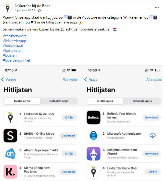 Ook opvallend is dat de app Lekkerder bij de boer, waarmee je kunt zien waar er een boerderijwinkel in de buurt zit, deze week op nummer 1 staat van meest gedownloade apps in categorie Winkelen van de appstore staat. Dat succes is niet alleen door de boerenprotesten, zegt ontwikkelaar Thomas Siahaya tegen omroep Zeeland. "Mensen vinden het steeds belangrijker om zo vers mogelijk voedsel te kopen, maar ook om de lokale economie te steunen. Je zorgt ervoor dat in de eigen regio de akkers er mooi bij blijven staan en dat er mooie gewassen op blijven groeien."
