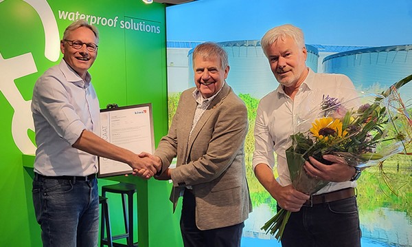 Overhandiging van het HortiQ-certificaat met v.l.n.r.: Dick van Regteren, Harm Maters en Roger Vos