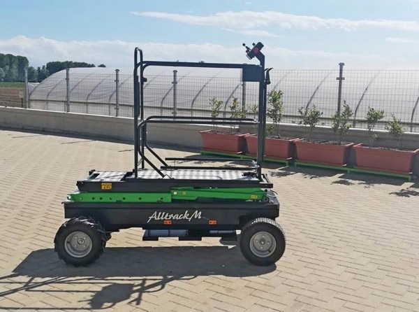 De laatste nieuwe trolley voor gewasverzorging is de Alltrack-H met een wielbreedte van 90 cm. Het platform kan tot 3 meter hoog worden opgetild dankzij de dubbele hydraulische scharnierunit. "Deze functie maakt het bedienen van de trolley heel eenvoudig. Deze trolley is natuurlijk het best geschikt voor grote kassen", benadrukt Barbara.