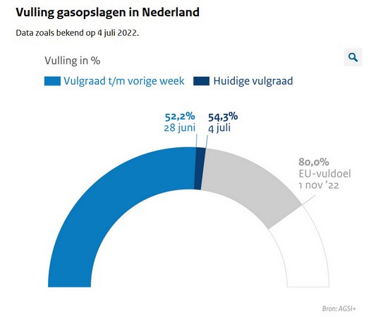 Vanaf 8 juli 2022 deelt het ministerie van Economische Zaken en Klimaat iedere week een update over de stand van zaken van het gasverbruik en -opslagen in Nederland. In dit korte overzicht staat de wekelijkse voortgang van het vullen van de gasopslagen, het totale gasverbruik in Nederland, de aanvoer van gas naar Europa en de Europese gasprijs gedurende de afgelopen week. Het ministerie kondigde de updates afgelopen vrijdag aan.