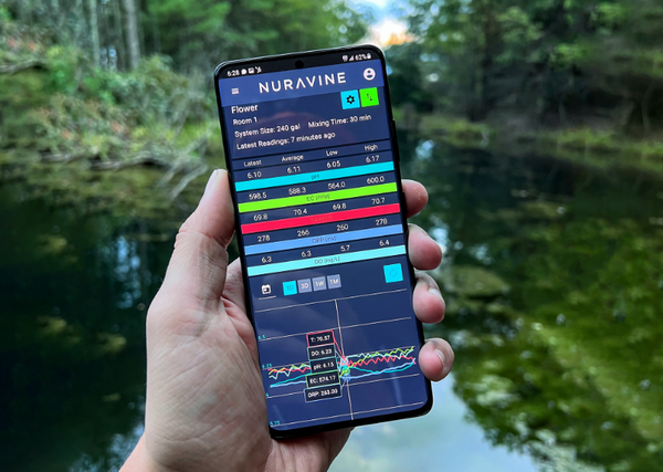 Dit is een van de redenen waarom Nuravine Aurora heeft ontwikkeld, een slim monitoringsysteem dat constant bijhoudt wat er in het irrigatiesysteem gebeurt, zodat het op basis van die informatie taken kan uitvoeren. Het systeem wordt geleverd met 5 verschillende sensoren die de pH, EC, DO, ORP en temperatuur meten. "Deze informatie geeft telers veel inzicht in de toestand van het water en de voedingsoplossing voor hun gewassen", zegt Alex.