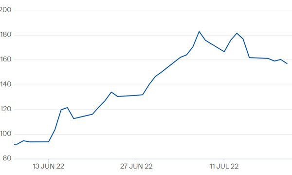 De gasprijs voor 'winter 2022' tot en met 21 juli op de Title Transfer Facility, het Nederlandse gashandelsplatform dat ook Europees van belang is. Klik hier voor de actuele prijzen.