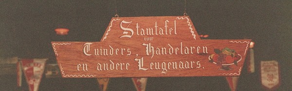 Boven de stamtafel in de veilingkantine hangt dit bord