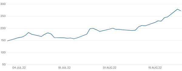 De gasprijs blijft voorlopig op Title Transfer Facility, het Nederlandse gashandelsplatform dat een belangrijke Europese referentie is, rond de 275 €/MWh hangen. Daarmee lijkt de nieuwe extreme stijging (voorlopig) een halt toegeroepen. Zekerheid is er echter niet, want het blijft crisis. Ook met extreme elektriciteitsprijzen. In deze crisisupdate onder andere meer daarover.