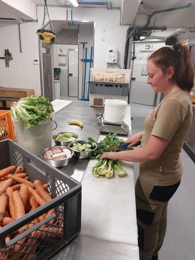 "In mei 2022 hebben we, na een korte inventarisatie van de wensen, twee Slitmaster 85 snijmachines inclusief een op maat gemaakt onderstel afgeleverd bij beide dierentuinen", vervolgt Ryou. "Door het verrijdbare onderstel en de standalone opbouw van de machine kan deze makkelijk verplaatst worden richting het spoelgedeelte van de keuken wanneer ze de machine reinigen of naar de werkplaats wanneer ze klein onderhoud uit willen voeren."