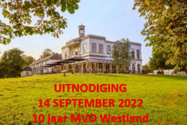MVO Westland viert op woensdag 14 september het 10-jarig bestaan, middels een feestelijk Zomerevent. De feestelijkheden vinden plaats in de kas van Villa Ockenburg van 16.30 uur tot 19.00 uur. Onder leiding van Rob Veenman wordt het toegestroomde publiek bijgepraat over de uitdagingen van de parallelle arbeidsmarkt door gastspreker Auke Blaauwbroek van Start Foundation.