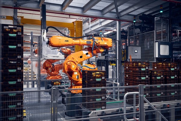 Barcodes voor de kratten, RFID-tags voor de pallets