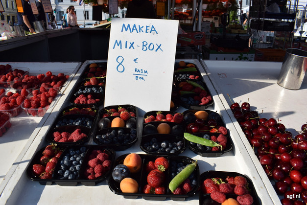 Op diverse kramen zijn mixboxen te vinden van zachtfruit en een peul
