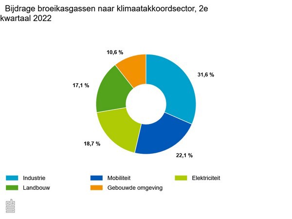 De elektriciteitssector heeft ruim 4 procent meer geproduceerd dan in het tweede kwartaal van 2021. Door de veranderde energiemix is de uitstoot van CO2 echter vrijwel gelijk gebleven. De energiemix die ingezet wordt voor de elektriciteitsproductie fluctueert in de elektriciteitssector meer dan in andere sectoren.