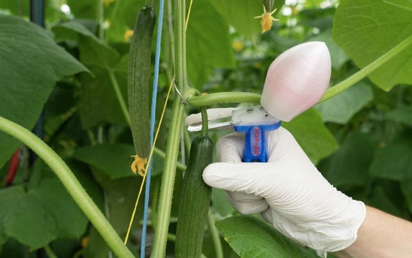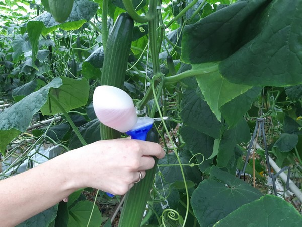 De teler heeft drie teelten komkommer per jaar in de kas staan. Tussendoor reinigen zij grondig de kas en ook tijdens de teelt is er veel aandacht voor hygiëne. “Bij het oogsten worden de handen elke halve rij ontsmet.” Het lastige bij het komkommerbontvirus is dat de plant pas na zo’n drie weken symptomen van besmetting laat zien. “Bij het snijden van de vruchten zie je er eerst niets van”, weet ook Herman. “Het gevolg is dat het virus zich snel ‘als een olievlek’ kan verspreiden via oogst- en gewaswerkzaamheden zodra eenmaal één plant besmet is.”