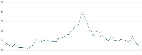 De gasprijs op de TTF van begin juli tot nu. Klik hier voor de actuele cijfers.