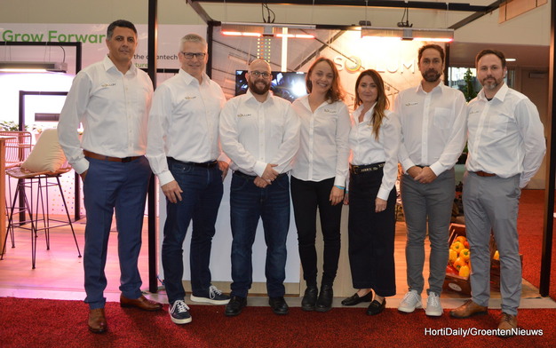 Namens Sollum Technologies verzorgt Rose Seguin (hier op de foto precies in het midden) een presentatie over belichting in de aardbeienteelt. Meerdere bedrijven op de beurs gaven aan flinke groei te zien in de bedekte aardbeienteelt op de regionale markten