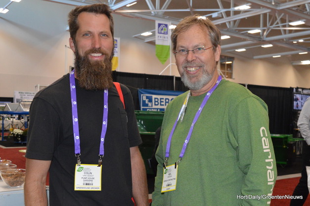 Teler Colin van Geest van Pump House Gardens, dat dit jaar van start ging met telen, en kassenbouwer Neil Rensen van Joshua Contracting. Hun beider namen verraden Nederlandse roots.