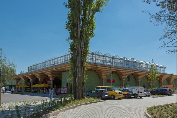 Het is net iets meer dan een jaar geleden sinds de retailketen REWE 'de supermarkt van de toekomst' heeft geïntroduceerd: een winkel met een kas op het dak. Alhoewel de kas op het dak zeker de aandacht trekt, zijn er ook nog andere interessante zaken. De structuur is bijvoorbeeld gemaakt van houten kolommen en de bedrijfsactiviteiten maken 100% gebruik van groene energie.