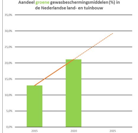 Groene Gewasbescherming. Als de trend doorzet stijgt het aandeel van 13% in 2015 naar bijna 30% in 2025.