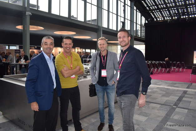 Javier Rico Pedrazo van Euroberry Marketing, Noud Linssen van Berrybrothers, Marnix van de Caaij van Quality Pack, en Nijs van Zuilen van Berrybrothers