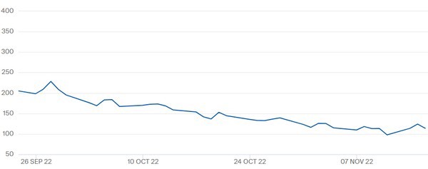 De TTF-gasprijs voor december sloot woensdag af op ruim 113 euro per megawattuur. Daarmee zakte de prijs ten opzichte van dinsdag met ruim 11 euro. Vanochtend opende de markt op 105 euro. Bekijk hier de actuele cijfers.