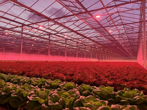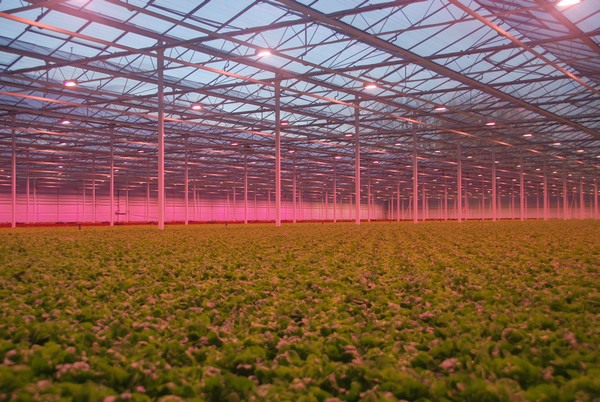 Behalve verrood hebben de slatelers ook een percentage wit licht toe laten voegen aan het spectrum. “Normaal zit er standaard 5% wit licht in. Wij hebben gekozen voor 8%. Dat houdt onze eigen werkomgeving prettig. Aan het eind van de teeltcyclus, waar we de sla verwerken, hangen armaturen met 20% wit licht erin.”