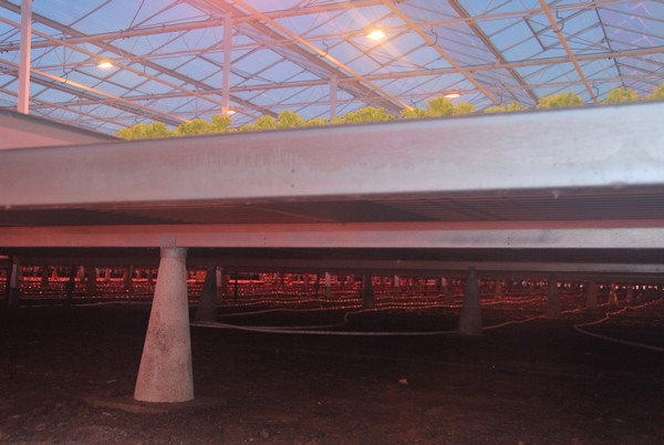 De LED-armaturen die in de kas bij Hydroponic hangen zijn watergekoeld. Een techniek waarop Oreon inzet en waardoor een stuk warmteterugwinning mogelijk is. Peter geeft aan dat dat aspect zeker meespeelde in de keuze voor specifiek de 650 W Empress-armaturen. “De warmte gaat met een pomp naar beneden, waarna het onderin de kas onder de goten via slangen weer ingebracht wordt. LED geeft minder stralingswarmte, maar op deze manier brengen we toch warmte in om de planten te activeren.”