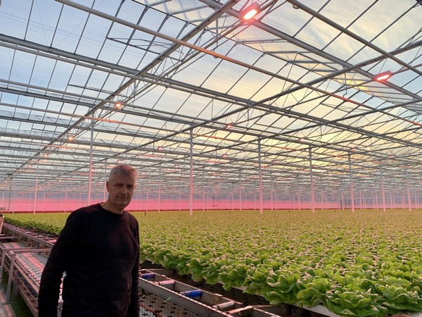 Teler Peter in zijn kas met belichting