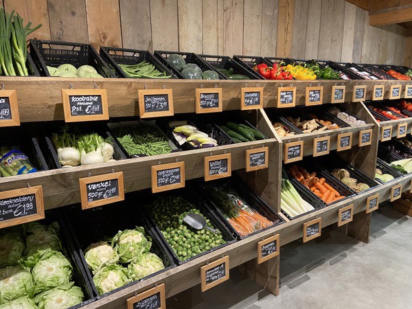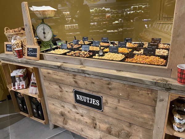 Daarnaast is er een nieuwe koeltoonbank geïnstalleerd waarin eigen gemaakte rauwkosten en salades verkocht worden en klanten worden bediend. Een bewuste keuze. “Daarom komen de mensen bij ons. Als ze zelf willen pakken, dan kunnen ze ook naar de supermarkt waar iedereen aan de tomaten zit te rammelen. Onze klanten stellen het op prijs dat wij alles netjes voor ze pakken. Een beetje zoals het vroeger gewoon was. Nu we wat meer zelfbediening hebben, heb ik ook winkelmandjes in de winkel, maar niemand gebruikt ze eigenlijk. Sommige klanten vragen zelfs of ze iets zelf mogen pakken”, aldus Claudia.