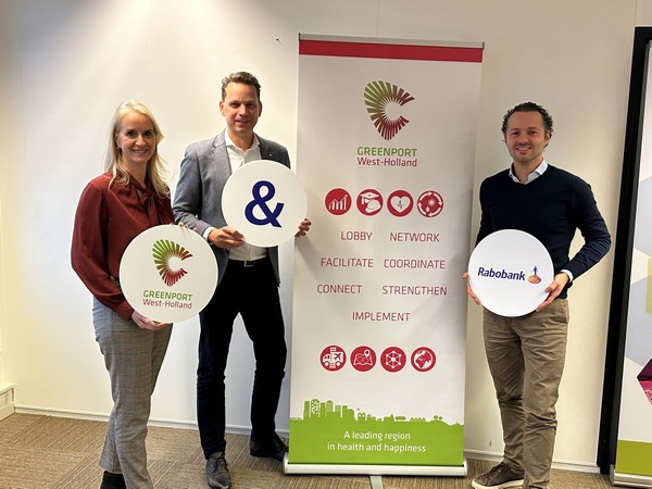 v.l.n.r. Jolanda Heistek (Greenport West-Holland), Sander Vroom (Rabobank) en Maurice Dame (Rabobank)