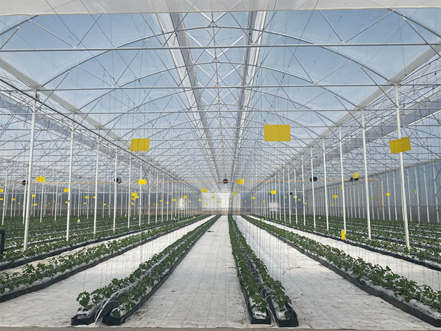 "Glas is ook de standaardkeuze voor telers omdat de lichttransmissie van glas hoger is dan die van folie", vervolgt Jelle. "Dat klopt: als je twee kassen met dezelfde vorm en structuur vergelijkt, zal de kas met dubbele plastic afdekking minder licht doorlaten. Maar omdat folie minder weegt dan glas, is de hele constructie veel slanker bij dezelfde belasting."