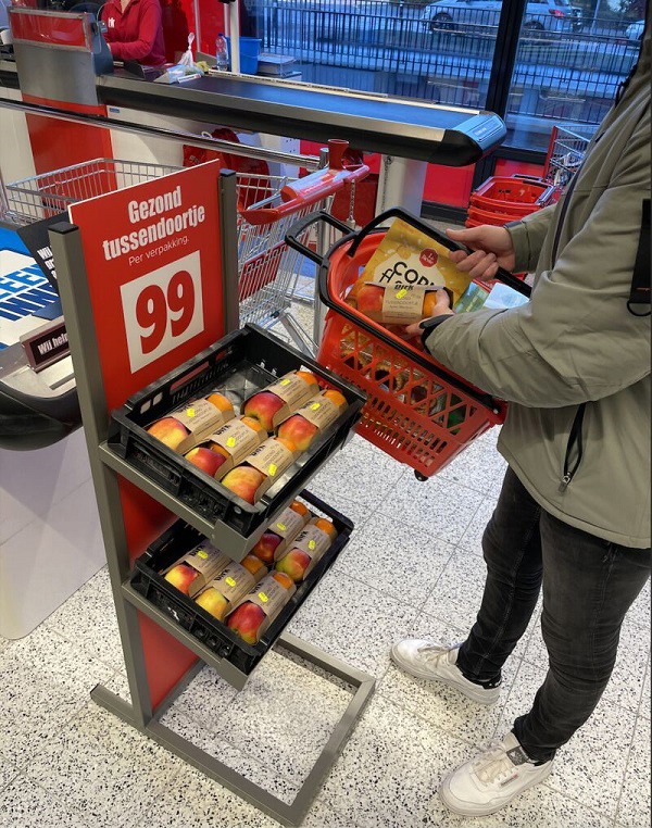 Nu is het tijd voor een volgende stap vindt Marcel Huizing, directeur Dirk. "Over het algemeen staat de kassa bekend om ongezonde impulsaankopen en wij willen dit patroon doorbreken. Door juist gezonde tussendoortjes aan te bieden, stimuleren we onze klanten om vaker te kiezen voor fruit. Zeker in deze tijd waarin ook gezonde producten alsmaar duurder worden, moeten wij oplossingen aan blijven bieden om gezond eten te stimuleren."