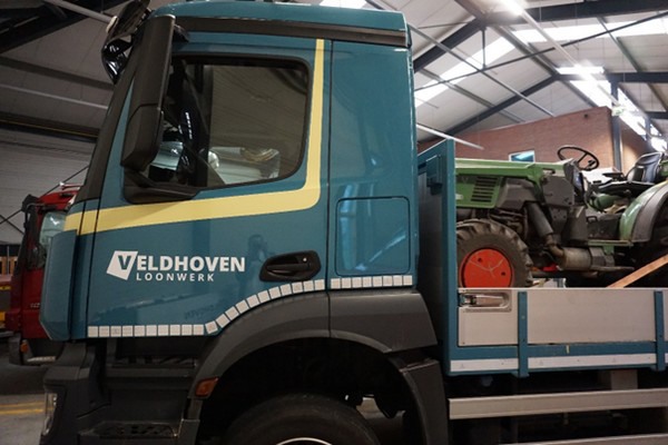 De overname heeft natuurlijk heel wat voeten in aarde. Op dit moment wordt het machine- en wagenpark omgestickerd. De logo’s van Marel en Veldhoven zijn gecombineerd. Deze auto heeft de metamorfose al ondergaan.