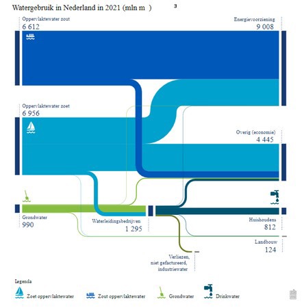 Het schema hieronder laat het Nederlandse watergebruik in 2021 zien.
