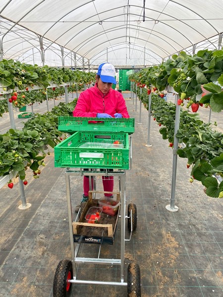 Combimetal Carrera, een bedrijf uit Zuid-Italië gespecialiseerd in staalconstructies en een fabrikant van innovatieve systemen voor de substraatteelt van aardbeien, heeft een nieuwe trolley gecreëerd om de oogst van aardbeien en ander zachtfruit te vergemakkelijken.