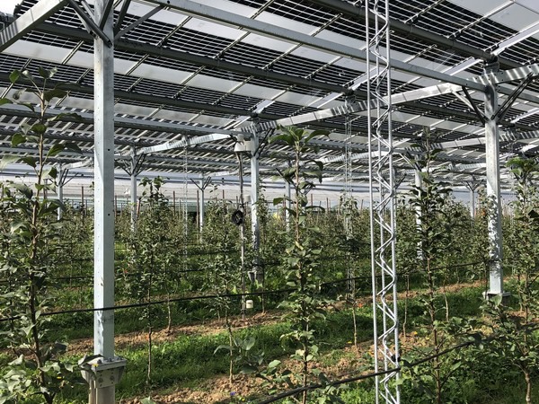Na een proef met bessen, test BayWa Global Produce de Agri-PV installatie met appelen