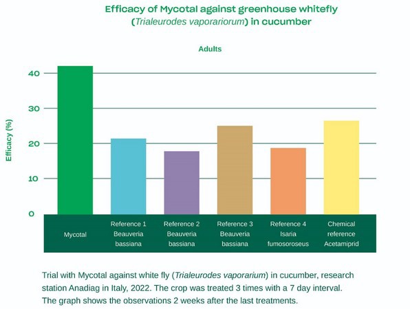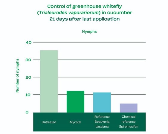 In vergelijkende veldproeven is aangetoond dat de werking van de nieuwe generatie Mycotal vergelijkbaar met of beter is dan die van andere chemische en biologische gewasbeschermingsmiddelen op de markt. "Met proeven in het lab en op het veld heeft Koppert onderzocht of er mogelijk nieuwe doelwitorganismen zijn voor Mycotal, met veelbelovende resultaten voor de bestrijding van andere plaaginsecten", aldus Roozemond. "In de komende jaren hopen we meer plagen en gewassen te vinden waarbij Mycotal met succes kan worden ingezet."
