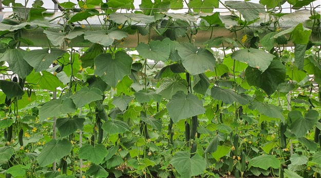 Een soortgelijke installatie werd getest bij een Israëlische komkommerteler. "Bij komkommers is de arbeid bij het opbinden nog groter door de delicate aard van de komkommerstengels," zegt Eliezer, die eraan toevoegt dat de komkommers die met deze methode worden geteeld niet alleen minder arbeid vergen, maar ook lekkerder zijn, zoals een Israëlische economische verslaggever opmerkte.