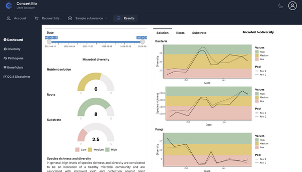 Hoewel het gebruik van microben in de traditionele tuinbouw zeer goed is ingeburgerd, kan hetzelfde niet worden gezegd van de grondloze teelt. "Op dit gebied begrijpt men dat microben in het systeem cruciaal zijn, maar het ontbreekt eenvoudigweg aan instrumenten om te begrijpen wat daar allemaal gebeurt. Dus nemen telers meestal hun toevlucht tot bleekwater of ozon om zich te ontdoen van de slechte microben, waardoor ook de goede microben worden gedood," zegt Dr. Paul Rutten, oprichter en CEO van Concert Bio.