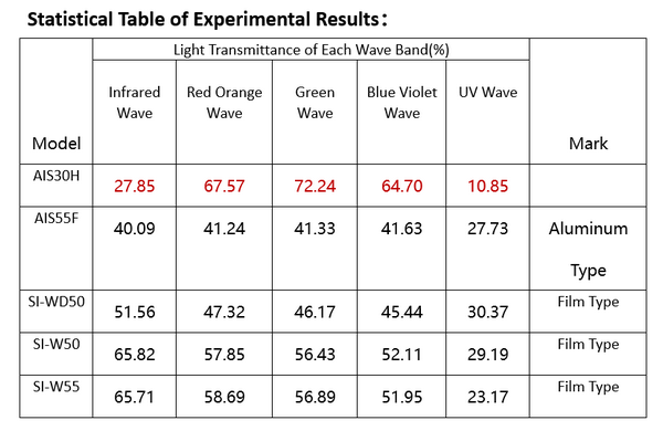 - De testgegevens voor infraroodblokkering en transmissie van zichtbaar licht van de SI 30H van Yongor presteren het best.