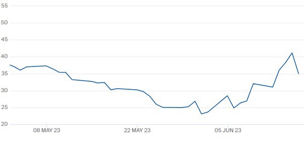 TTF-gasprijs julicontract t/m 16 juni 2023. Klik hier voor actuele cijfers.