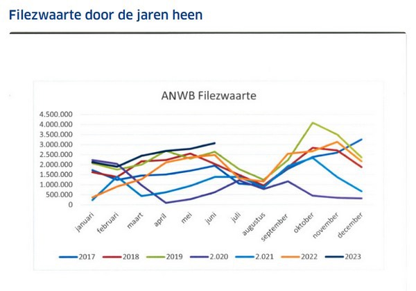 Uit de dagelijkse monitoring van de doorstroming op onze wegen, concludeert ANWB Verkeersinformatie dat het effect van thuiswerken en buiten de spits reizen niet of nauwelijks meer zichtbaar is. Zowel tijdens de spitsuren als overdag nam de filezwaarte het afgelopen halfjaar weer fors toe. Het aantal files tijdens de ochtendspits steeg met 13 procent en in de avondspits met 9 procent. Uit de CBS cijfers blijkt dat het aantal motorvoertuigen in ons land sinds 2019 is toegenomen met zo'n 500.000. Dit verklaart ook de forse toename (40%) van het aantal files overdag.