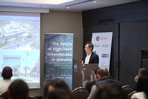 Op de eerste dag van de conferentie waren er sprekers van bedrijven zoals Priva, Van Iperen, Rijk Zwaan, Svensson, Russel IPM, Lumiforte, Plastika Kritis, AgroSpace, Bioline Agrosciences en Greenhouse Engineering. De sprekers deelden kennis, inzichten en professionele expertise over de nieuwste ontwikkelingen en technologieën in de glastuinbouwsector. Ze wisselden ideeën uit en lieten technologieën en innovaties zien, waarmee de sector in Armenië getransformeerd kan worden.