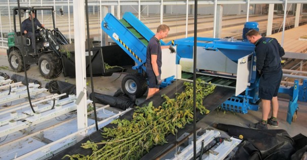 Omdat de uitruimmachine vastzit aan een snoer, kan je hem onbeperkt met een elektrische heftruck door hele de kas aan het werk zetten. “Vooral in komkommerkwekerijen wordt de Bio Hopper veel ingezet, maar ook om tomatenblad uit te ruimen tijdens de teelt, en om steenwol of gronddoek eruit te draaien.”