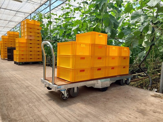Alle 25 stalen transportwagens van Berg Hortimotive zijn door Steenks Service bezorgd bij biokwekerij Frank de Koning in Tinte. De kwekerij heeft gekozen voor transportwagens met een plank, zodat de wagen geschikt is voor diverse soorten en maten kisten. Hierdoor kan de biokwekerij op een efficiënte manier de geoogste groentes vervoeren. Elke teelt heeft namelijk een andere soort kist, maar door de plank is het alsnog mogelijk deze hierop te plaatsen. Dit maakt de transportwagens geschikt voor biokwekerij Frank de Koning.
